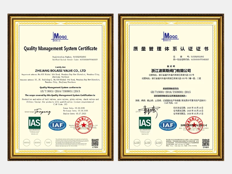 Zhejiang Bolaisi Valve Co., Ltd. har varit engagerad i ventilindustrin i över 20 år. Företaget registrerades officiellt och etablerades 2013. Efter mer än tio år av utveckling har Bolaisi Valves affärsbehov ökat stadigt. För att möta dessa växande krav etablerade företaget ett import- och exporthandelsbolag 2025. Företagets huvudprodukter är bl.a.grindventils, klotventiler, backventiler, kulventiler, fjärilsventileroch filter. Under hela sin utveckling har företaget fått ett starkt stöd från alla samhällssektorer och dess kunder. Inför framtida utmaningar kommer företaget att anta en helt ny affärsfilosofi, noggrant odla en unik företagskultur och ägna sig åt att förse inhemska och internationella kunder med mer praktiska lösningar, bättre rykte, produkter av högre kvalitet och mer omfattande tjänster. Vi följer alltid affärsprinciperna "sträva efter excellens utan gränser" och "allt för kunden." Vi välkomnar verkligen nya och gamla kunder från hemlandet och utomlands för att besöka vårt företag för vägledning och samarbete baserat på principerna om "hög kvalitet och rimligt pris, kompletterande fördelar och ömsesidig nytta." Bolaisi Valve är villig att arbeta hand i hand med dig, växa tillsammans och skapa en lysande framtid!